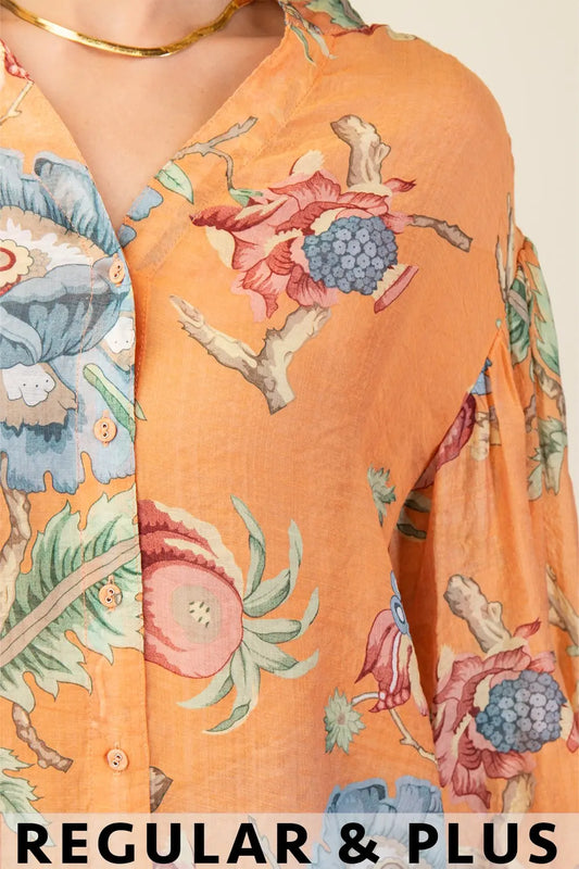 Floral Print Puff Sleeve Midi Dress